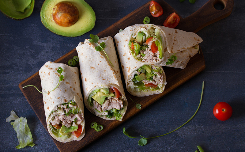 Perfect for an easy meal that is both healthy and delicious, these tasty avocado and rotisserie chicken burritos are packed with fresh ingredients, and come together with a zesty lemon Dijon dressing. Dressing Ingredients 1/3 cup Greek yogurt 1 Tbsp. mayonnaise 1 Tbsp. Dijon mustard 2 Tbsp. extra-virgin olive oil 1 clove garlic, finely minced 1/2 tsp. lemon zest 1 Tbsp. fresh lemon juice salt and pepper, to taste Dressing Instructions Whisk together the yogurt, mayonnaise, and mustard in a medium bowl until well blended. Whisk in the olive oil, garlic, lemon zest, and lemon juice. Season to
